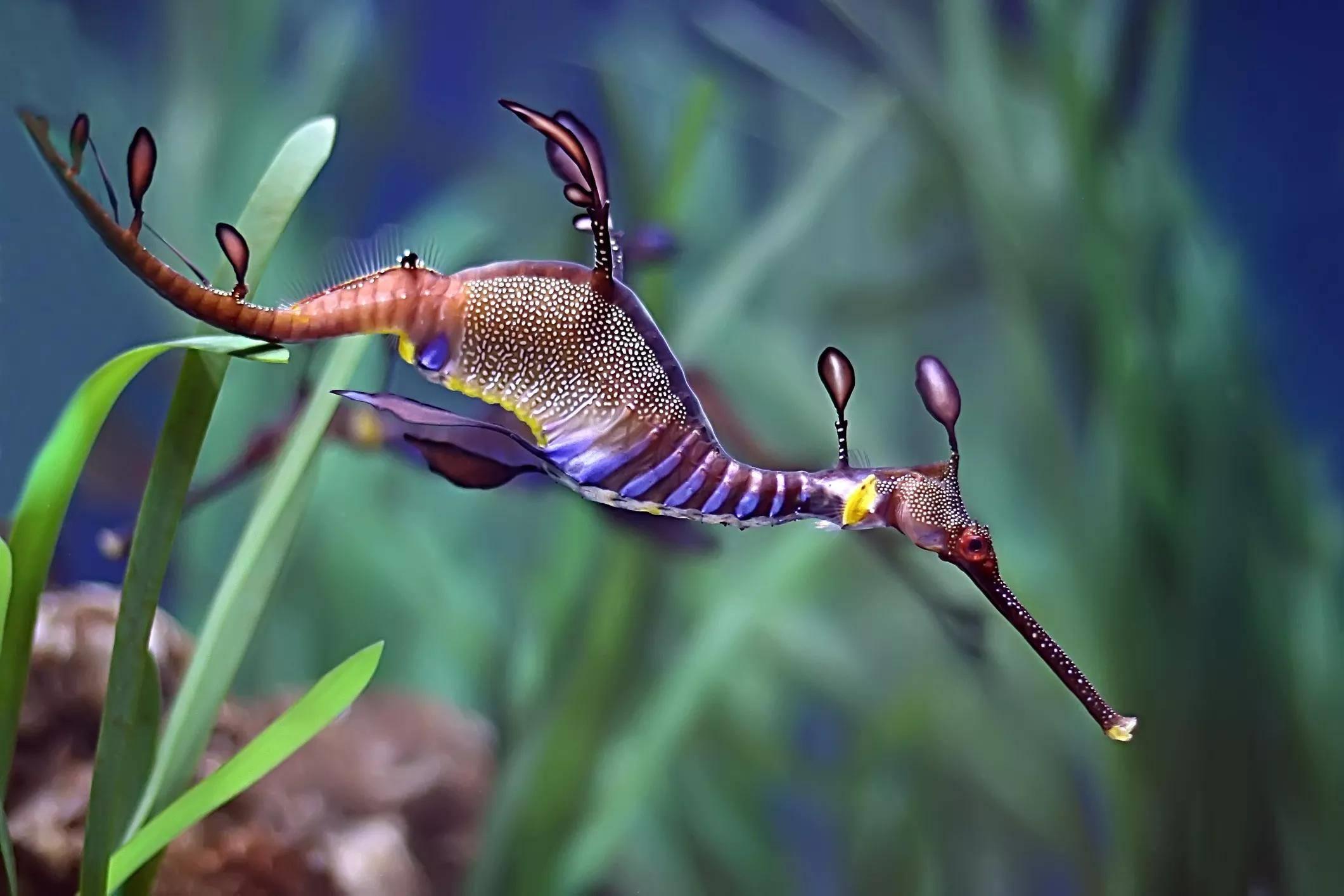 叶海龙主要栖息在隐蔽性较好的礁石和海藻生长密集的浅海水域,如同传说中的龙一样,行踪隐秘,充满神奇色彩。并且它因其身上布满形态美丽的绿叶,游动起来,摇曳生姿,也被称为“世界上最优雅的泳客”