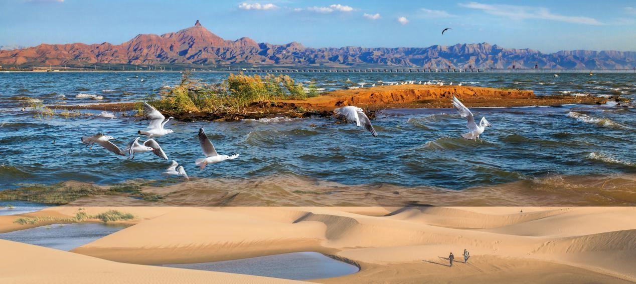乌海湖生态旅游景区是由黄河海勃湾区水利枢纽工程建成后形成的118平方公里的舒缓水面及环湖区域,与甘德尔山生态文明景区共同呈现出一片水沙相映,山水相连的壮观景象。