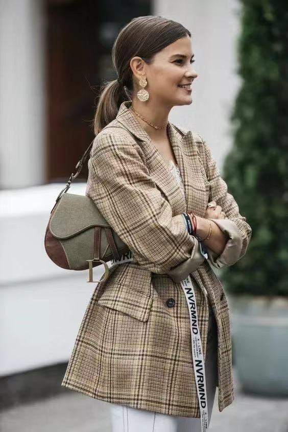 相信在今年的时髦单品中你一定对这一单品有所耳闻,因为强大的修饰功能,它已然已经被搬上的时尚单品的宝座。那么在腰部的配饰选择上我们可以通过一个腰封的佩戴来打造出隐隐的层次感。但是为了遵循oversize风的宽松要义,我们在具体的款式选择上不要去选择哪种过于宽的腰封款式,适宜的宽度就可以了,最好横向分布长度不超过两厘米最佳。