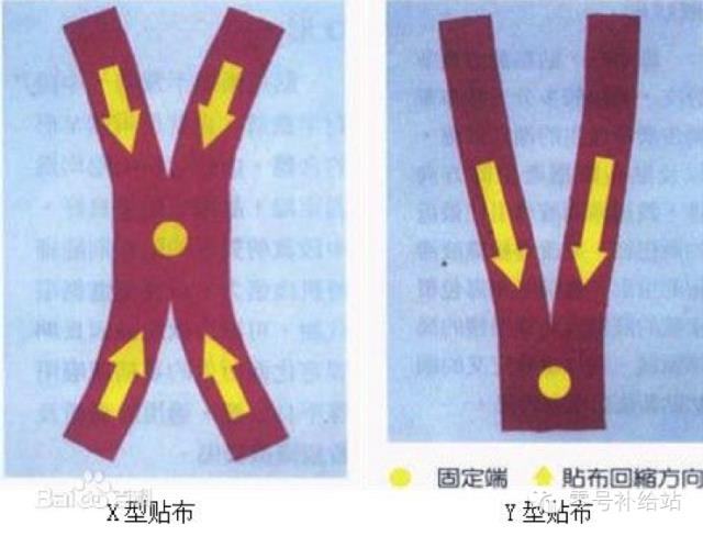 贴布两端不裁剪,中段对半裁剪,也就是两个Y型的合体,由于贴布两端均为固定端,故稳定效果良好,中段对半裁剪的贴布则能维持肌肉张力,促进循环代谢。