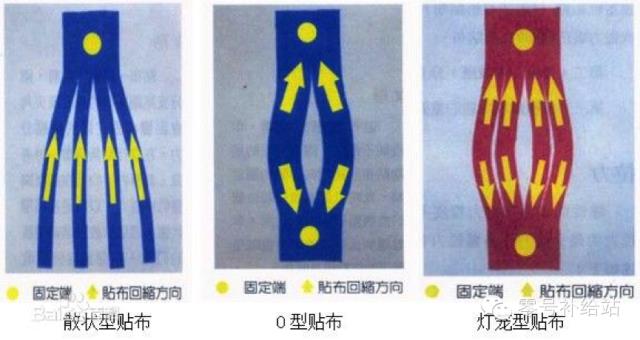 根据贴扎目的及贴扎位置的解剖特点的不同,肌内效贴布有多种剪裁方法,常见的有I、X、Y、O、散状、灯笼等几种。