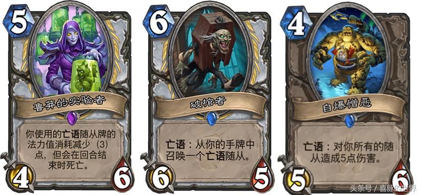 其原理为,先鲁莽的实验者上场并减费+1个破棺者(3费)+2个自爆憎恶(每个1费),然后回合结束,破棺者的亡语先拉出机械克苏恩,最后2个自爆憎恶的亡语清场,直接取胜。