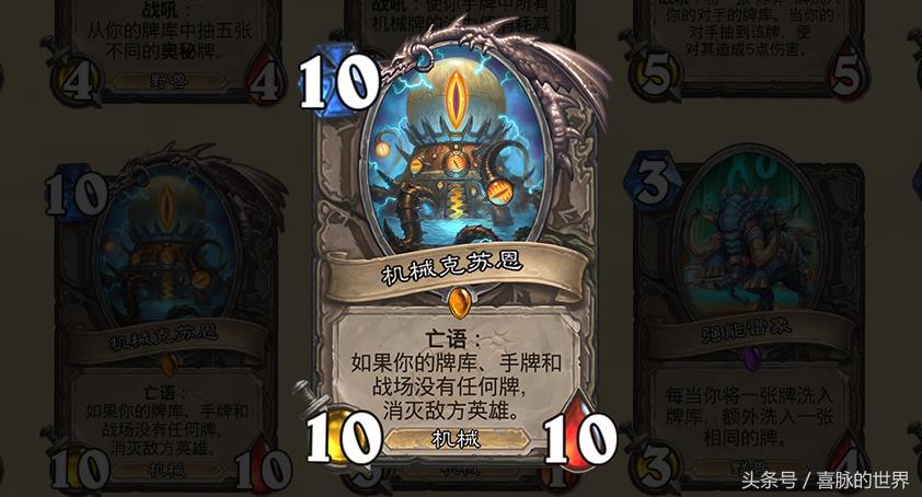 这种牧师套路并不需要刻意攒手牌,因为可以用赫米特直接崩牌库来加速过牌,主流的机械克苏恩牧往往会用任务体系来迷惑对手,因此,机械克苏恩牧算是目前最靠谱的机械克苏恩体系了!