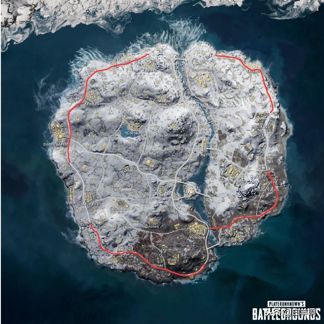 3.雪地地图最佳完成路线就是下图,这几条路线不仅人少(不排除遇到同行的可能),而且路边野房子多,随便捡点子弹,药物就可以扛着毒来做任务了。