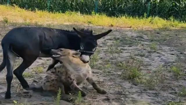 驴就不同了,只要它们认为这种食肉动物对自己的幼崽存在威胁,那么就会冲过去攻击对方。作为一种食草动物,驴并没有食肉动物那样的犬齿,不过它的咬合力也是非常强的,它会一直追着鬣狗咬,会咬住鬣狗的脖子或者耳朵,所以驴对鬣狗来说也是一种非常危险的动物,就算来再多的鬣狗围攻驴,也不见得会占有便宜。