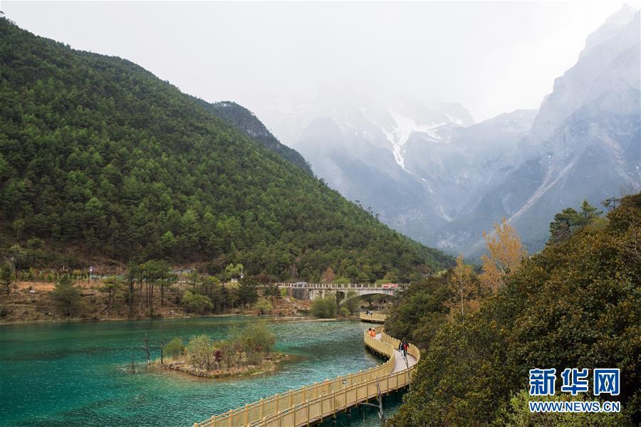 游客在丽江玉龙雪山蓝月谷观光(4月21日摄)。新华社记者 胡超 摄