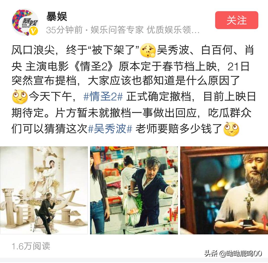 事件的主要经过就是这些,历时整整四个月。小三陈昱霖目前被关押:吴秀波默不作声,但新电影《情圣2》本来定于春节档,21日宣布提档到24日,就在下午被正式宣布撤档,上映日期待定。
