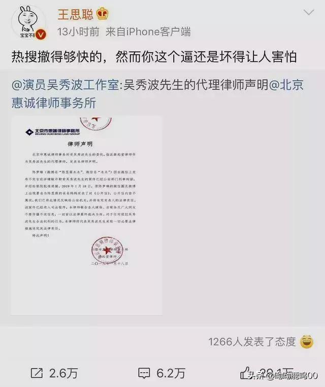 当天王思聪就转发微博这篇律师声明,直指“这b”。