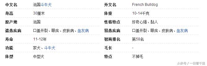 法国斗牛犬是能力很强的优秀警卫犬,而且活泼、聪明、肌肉发达,性格温顺,骨骼沉重,被毛平滑、结构紧凑,体型中等或较小,表情显得警惕、好奇而感兴趣。