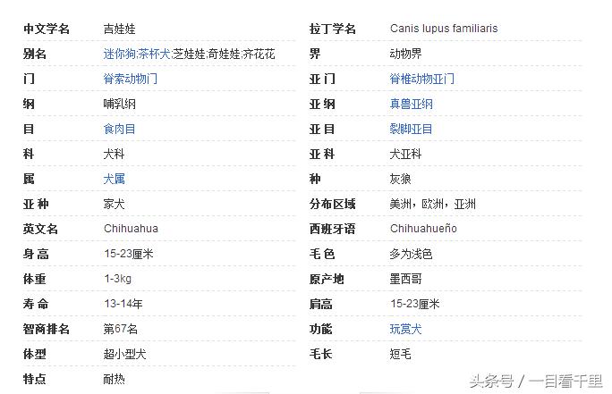 吉娃娃是目前人们所知道最古老的犬种之一,原产于美洲,和墨西哥的古老文明有深厚而密切的关系。吉娃娃属小型犬种里最小型,优雅、警惕、动作迅速,以匀称的体格和娇小的体型广受人们的喜爱。它不喜欢外来的同品种的狗。有和梗类相似的特点。精力充沛。体型较小,适合家养。
