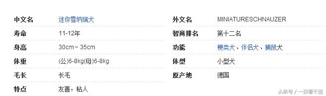 迷你雪纳瑞犬(MINIATURESCHNAUZER),在德国被称为茨威格雪纳瑞犬,由普通雪纳瑞犬和小型犬杂交得到。它们的外型及性格与它们的表亲—标准雪纳瑞十分类似,警惕而活泼,不易掉毛。缺点:玩具化、过于纤细或粗糙。