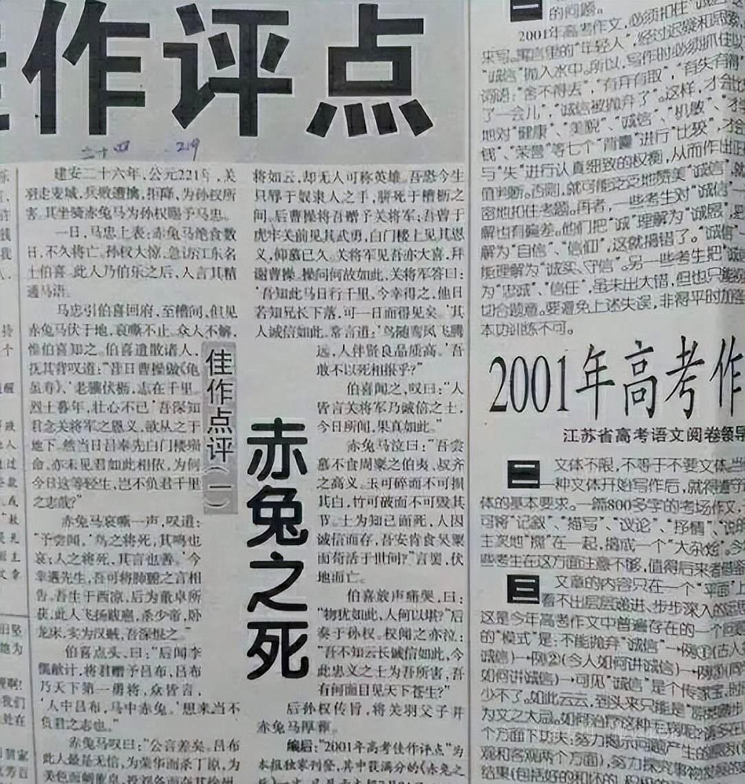 21年前写“赤兔之死”江苏考生后来怎么样了?