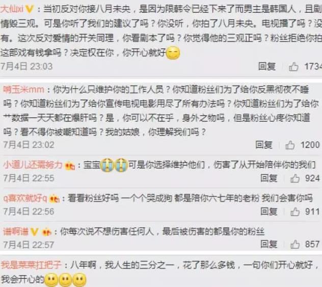 无视国际关系接了有韩国艺人参演的安妮宝贝的小说改编的《八月未央》,导致至今拖档未播;
