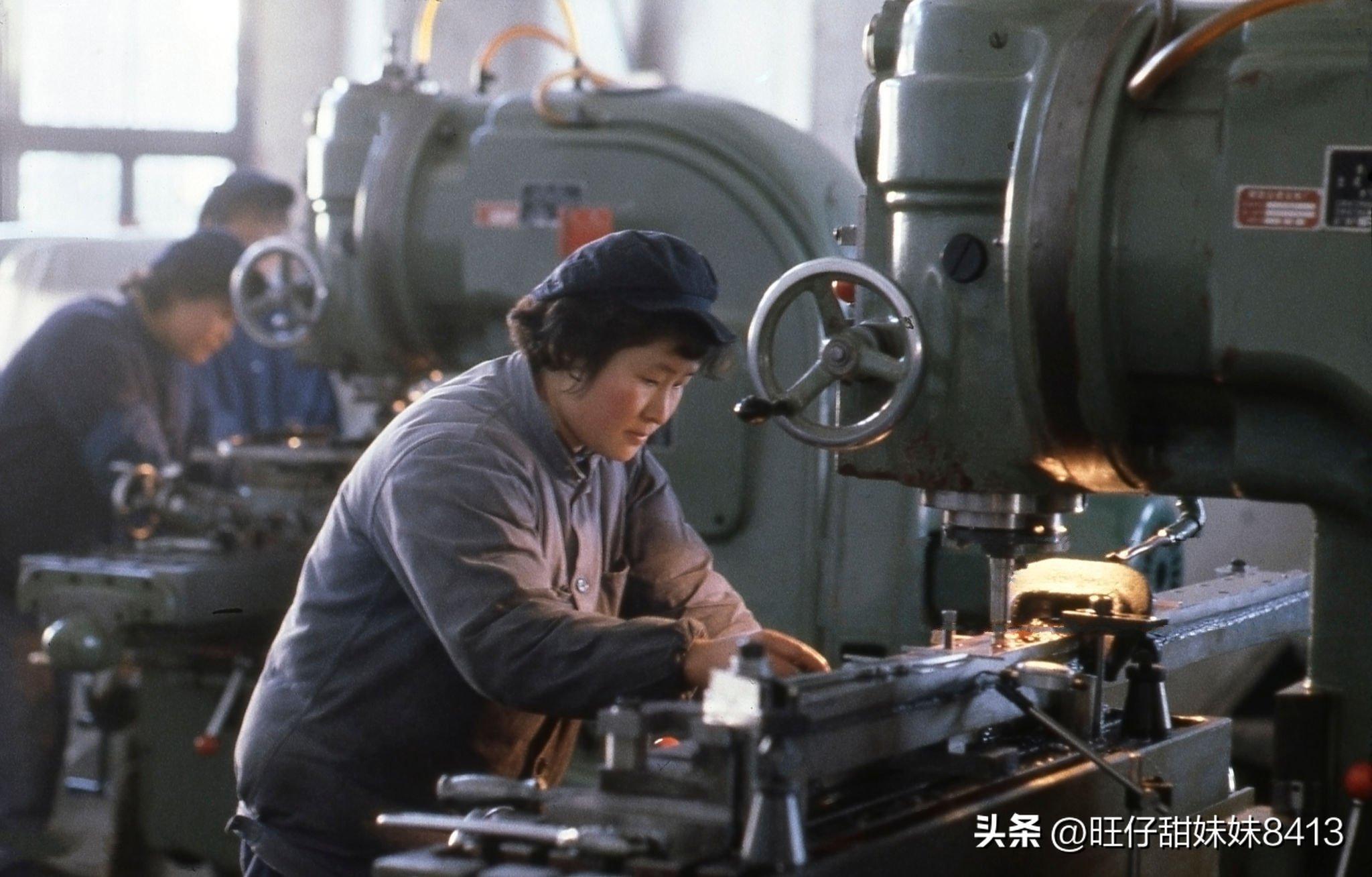 这是工厂车间的一幕,女工正在操作机床,谁说女子不如男,那个年代女人也能顶起半边天。