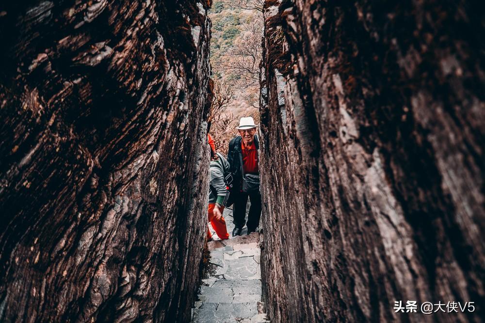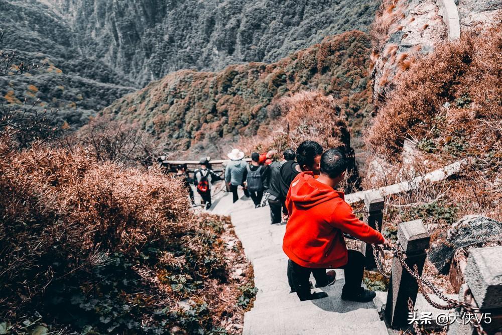 因为登山道狭窄且陡峭,两侧就是深沟巨壑,所以爬山的时候很多人都会紧紧抓住铁链,但是因为铁链上锈迹斑斑,所以建议爬山的时候最好带上一副手套。