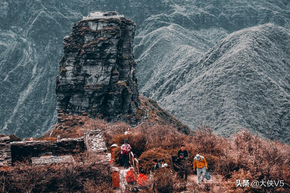 海拔2494米的梵净山老金顶,俯瞰天空之城和佛光