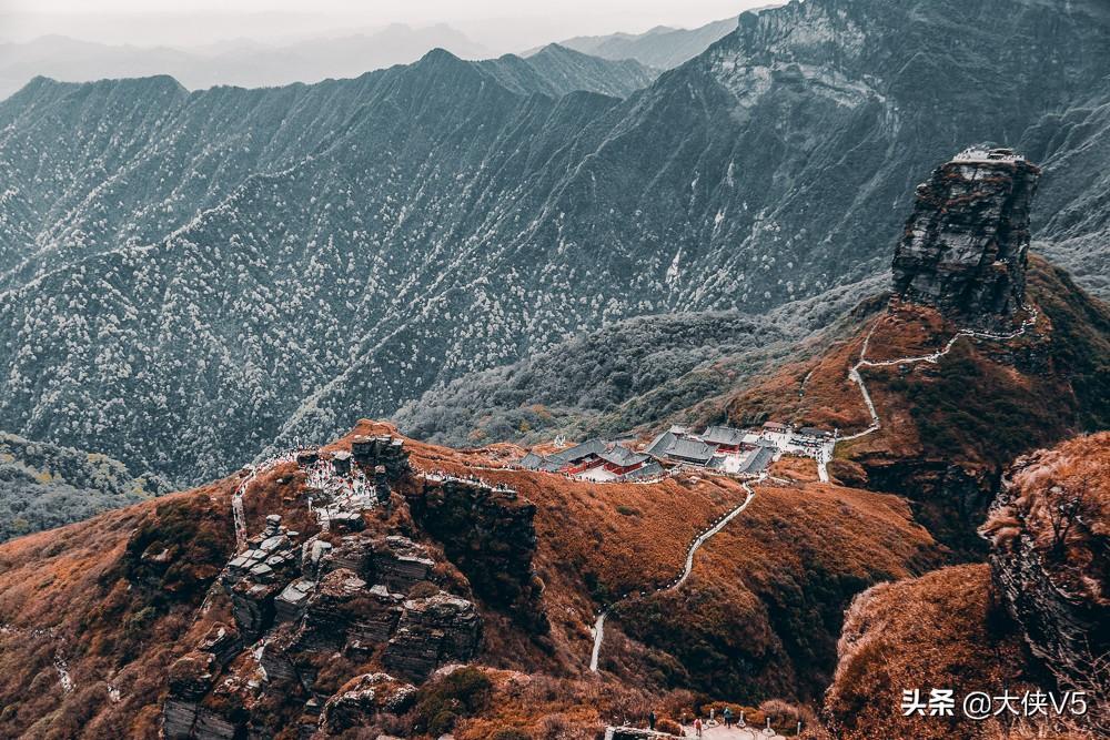 2018年底,《国家地理》发布19年全球旅行清单,全世界23个地方上榜,其中就有一个来自中国贵州梵净山的天空之城红云金顶。去过梵净山的游客都知道,梵净山有一新一老两个金顶,新金顶就是有着天空之城美誉的红云顶,而老金顶与新金顶隔空相望,是远眺天空之城最好的机位。