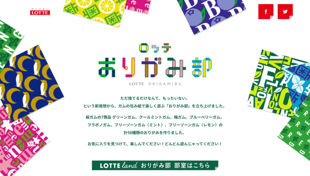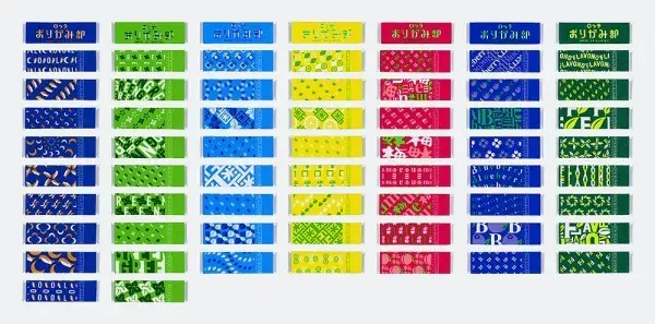 7种口味、58种花色,乐天口香糖结合日本传统折纸,于近期推出的一系列口香糖零食,使包装纸不再成为无用的垃圾。