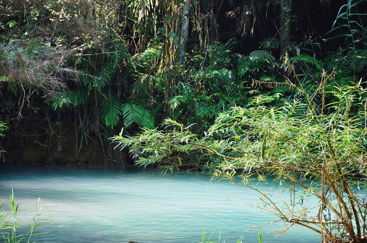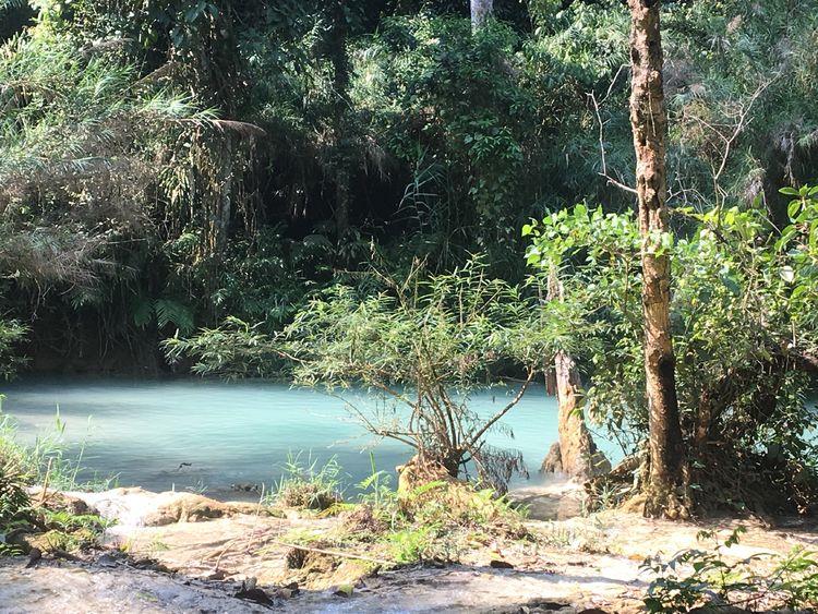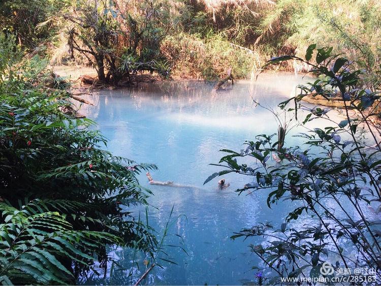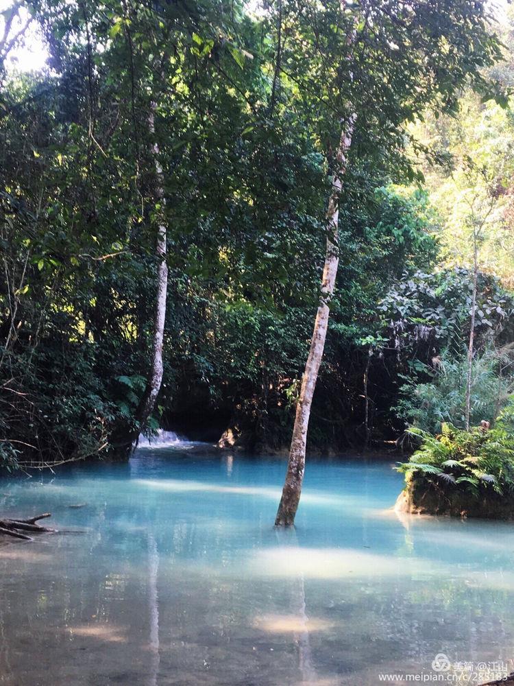 瀑布群在山下汇集成一个个水池,呈仙境般的碧蓝色,有点像九寨黄龙的钙化池。虽然景色不如九寨沟,却胜在自然没那么多人为的痕迹,有的只是大自然神奇造物与一片安静祥和所造就的世外桃源!