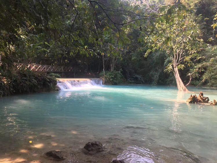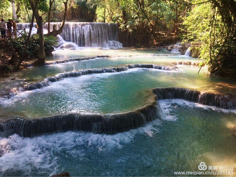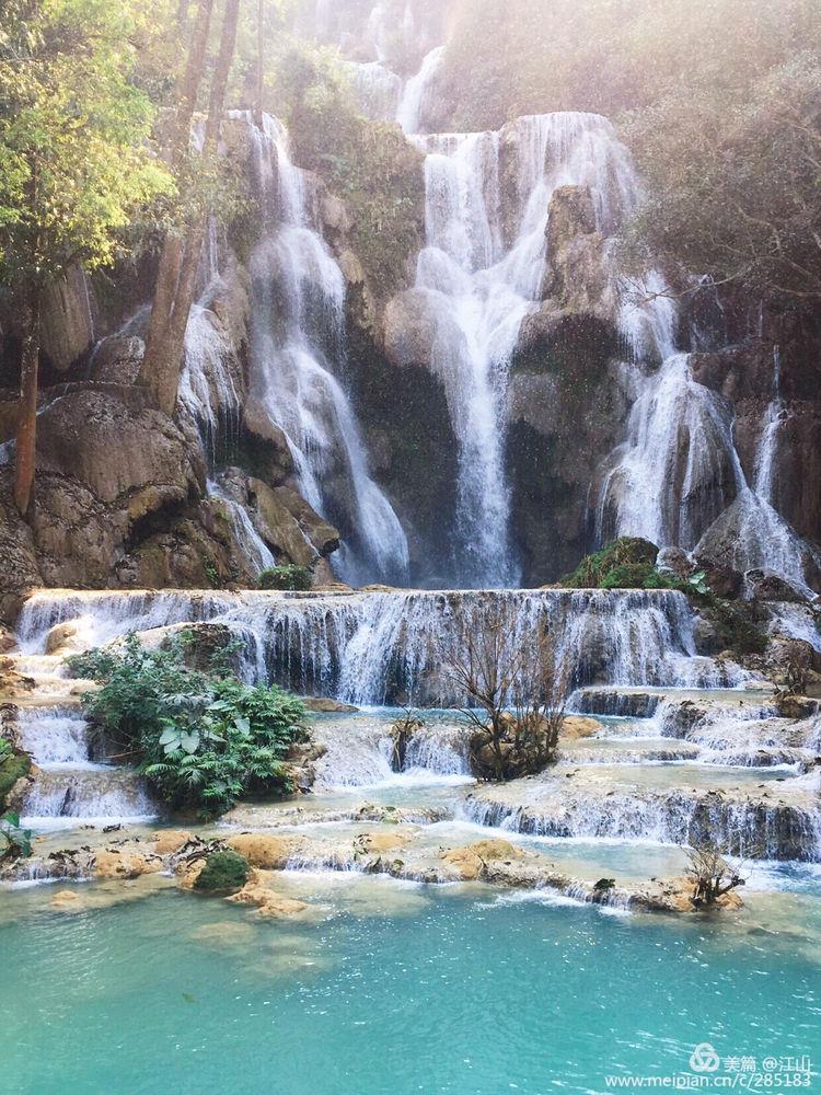 老挝光西瀑布(Kuang Si Waterfall)在琅勃拉邦以南大约30公里处,是由一个大瀑布和山下多个小瀑布组成的瀑布群,总落差200多米,景色美丽如画。