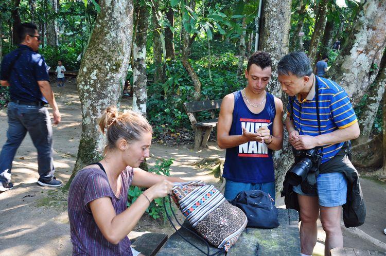 我的同伴正在和这对法国情侣交流
