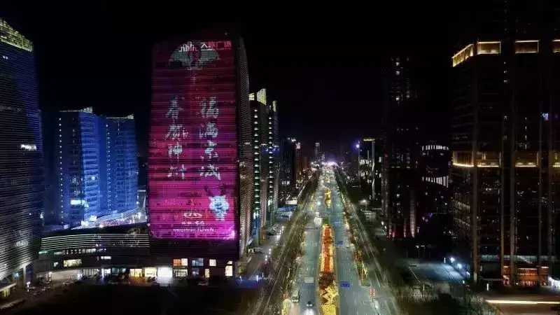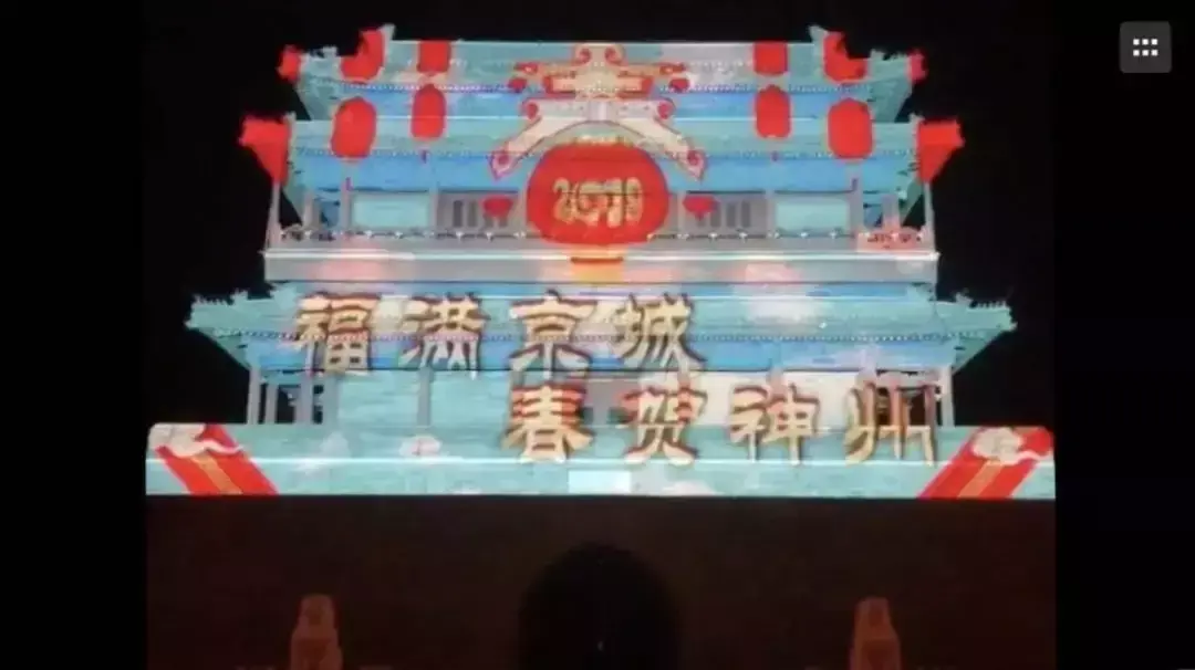 在永定门城楼上,运用激光投影技术,以灯光、激光、音效等打造灯光秀场。展示祖国大好河山和美丽的北京中轴线,结合国徽、国旗等元素、东城特色画面、“福满京城 春贺神州”“我爱你中国”“祝首都人民元宵节快乐”等活动主题和祝福语,配以喜迎春天、欢度元宵佳节等视频图案。
