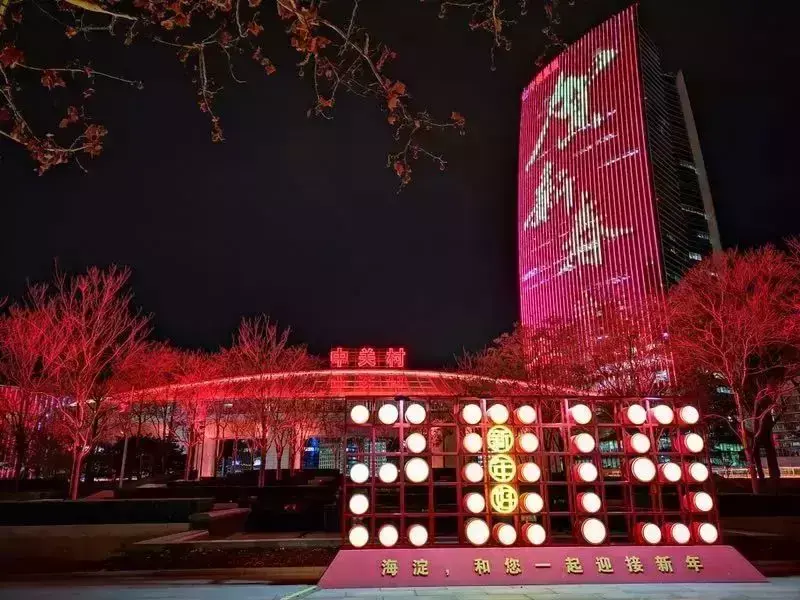 中关村元宵节灯光秀分两个场景,其中在中关村西区,灯光秀主舞台设在中钢大厦、e世界大厦及中关村广场,大街沿线20余栋楼体同步联动,共分为海淀之蕴、科技之光、新春之福三个篇章。