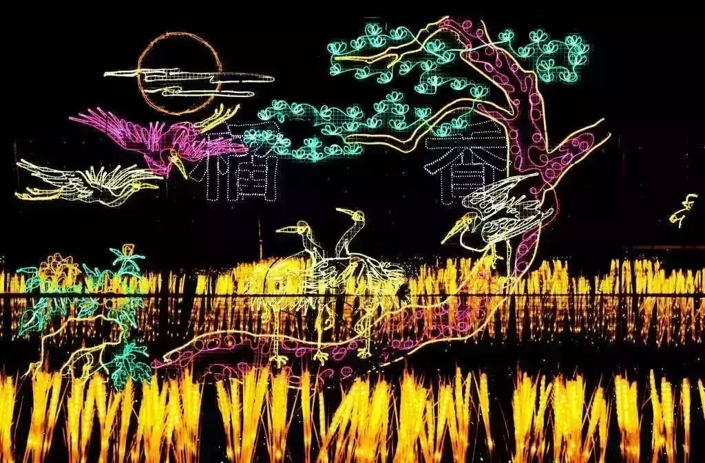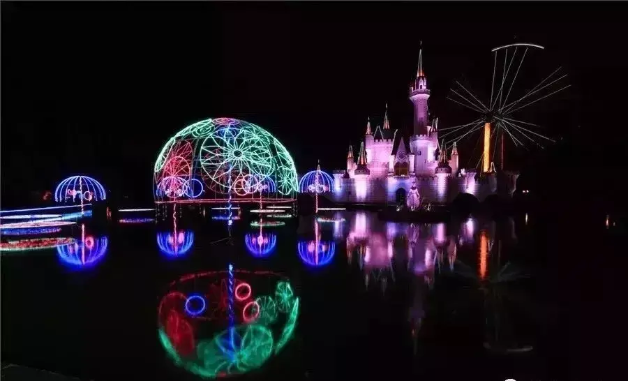 占地20多万平米,包含农耕主题、爱情主题、传统文化主题、童话主题、海洋主题、花海主题等多个灯光秀主题。
