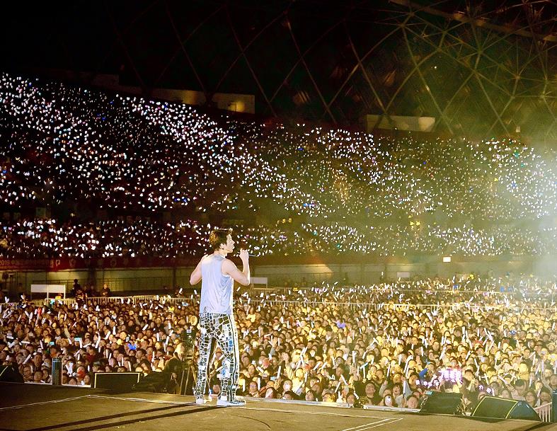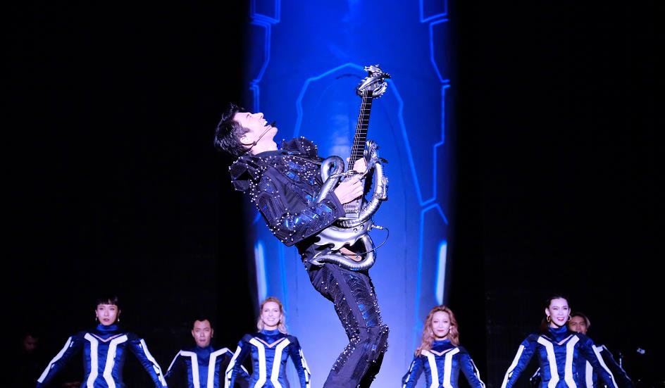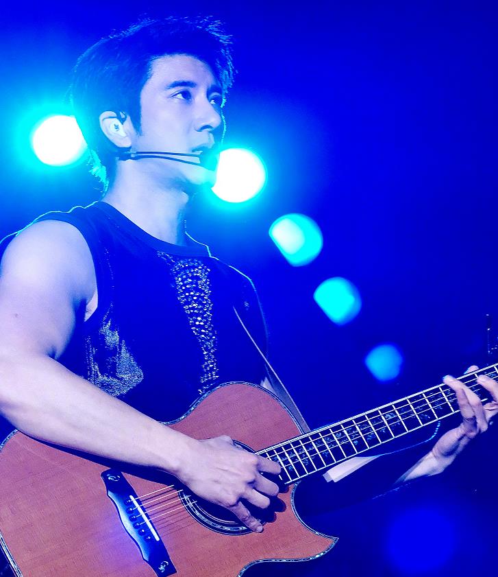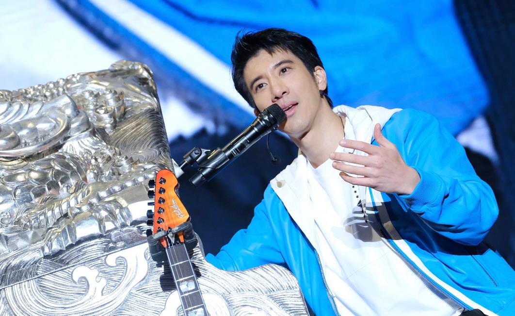 王力宏晒演唱会照片,穿蓝色皮衣弹钢琴,型男也能穿泡泡袖