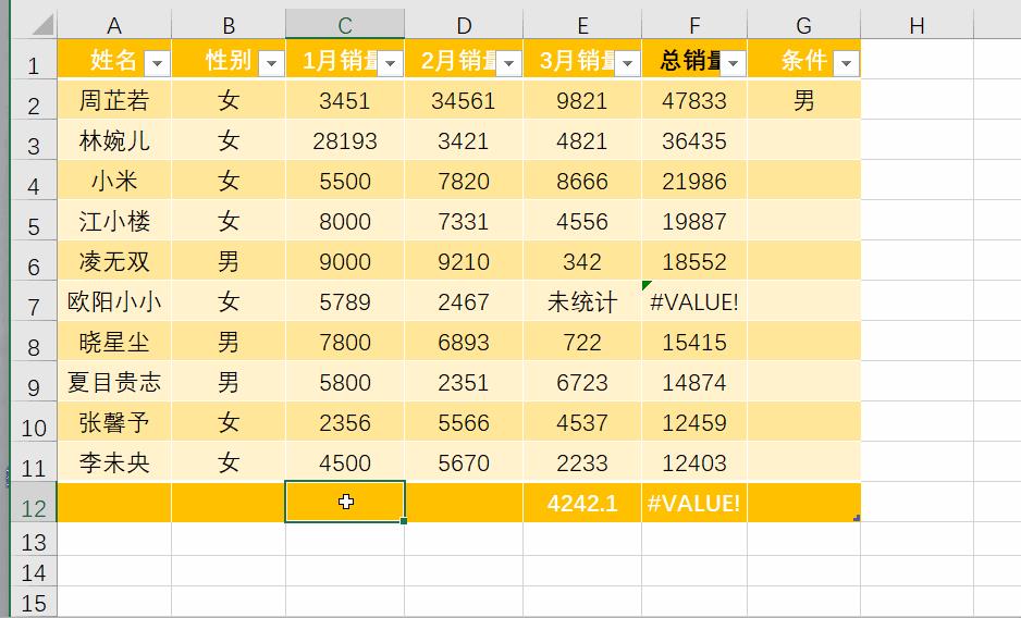如果我们在一个销售数据中,想要知道女生的平均销售额,你可以输入平均值函数=AVERAGEIF,在括号中先选择条件区域,这里想知道女生的平均销售额,应该选择“性别”区域,接着设置条件,是“女”,然后是“数据区域”。整体的函数公式应该是: