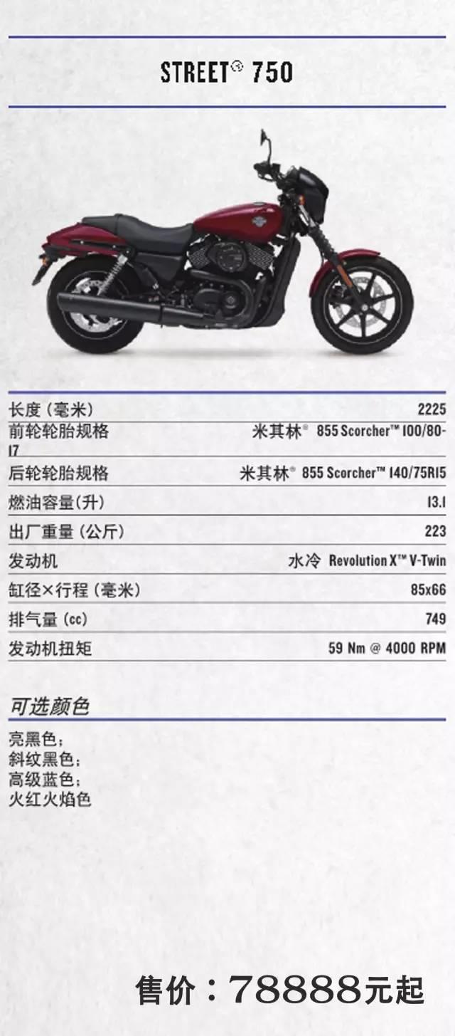 目前在我国售价最便宜的哈雷摩托车STREET 750售价仅为78888元,这个价格在大贸摩托车领域还是非常有杀伤力的。从最便宜的哈雷STREET到最贵的哈雷旗舰滑翔CVO,价格跨度从7万多一直延伸到近60万元人民币,这足以见证哈雷家族之庞大。如果您很想了解目前在售的哈雷车型,请坚持把全文看完,希望能让您对哈雷在售摩托车有个初步了解。