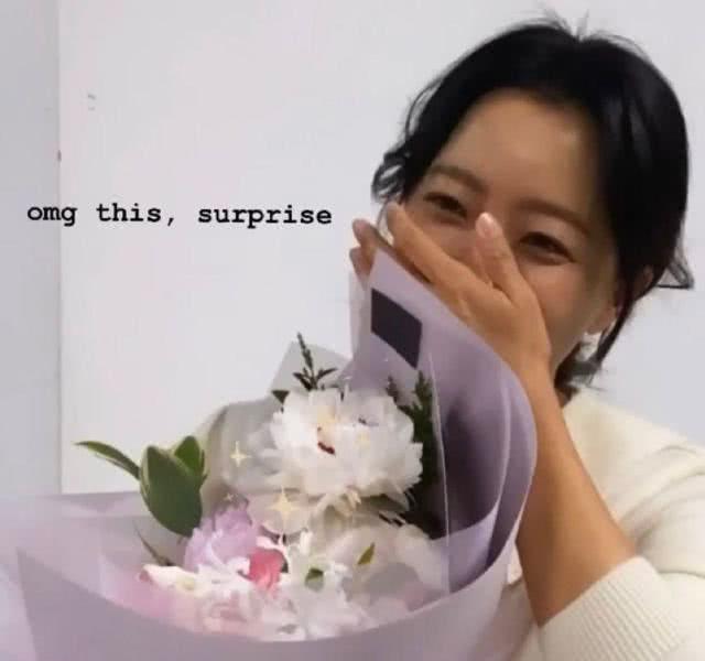 想必是非常开心工作人员为自己庆生,所以在收到鲜花的时候,金喜善也是非常开心的捂着嘴巴笑起来,果然还是女神呀,整个人笑起来也是给人曼妙少女的状态,这保养也太好了。