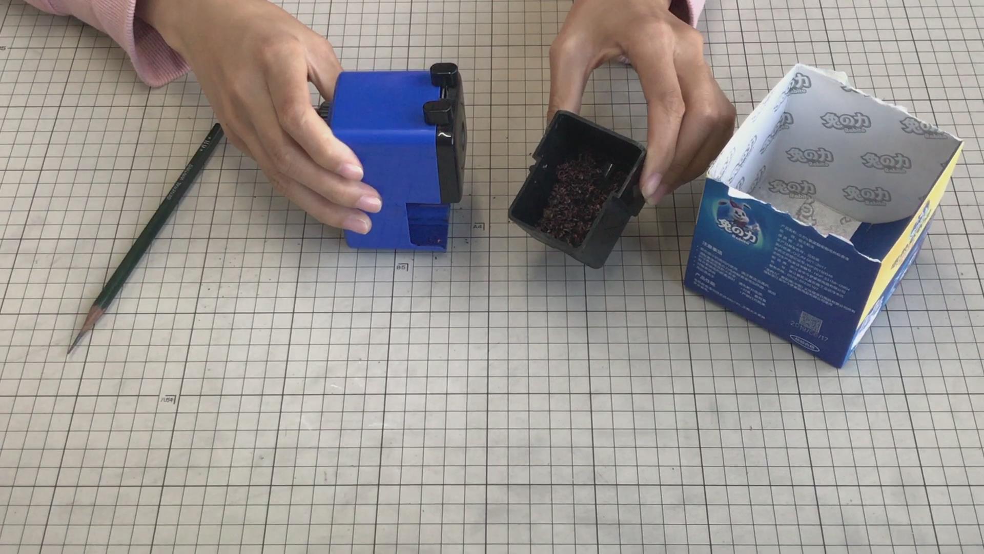 然后我们的铅笔削在这里取出,倒掉就可以了,非常的方便,