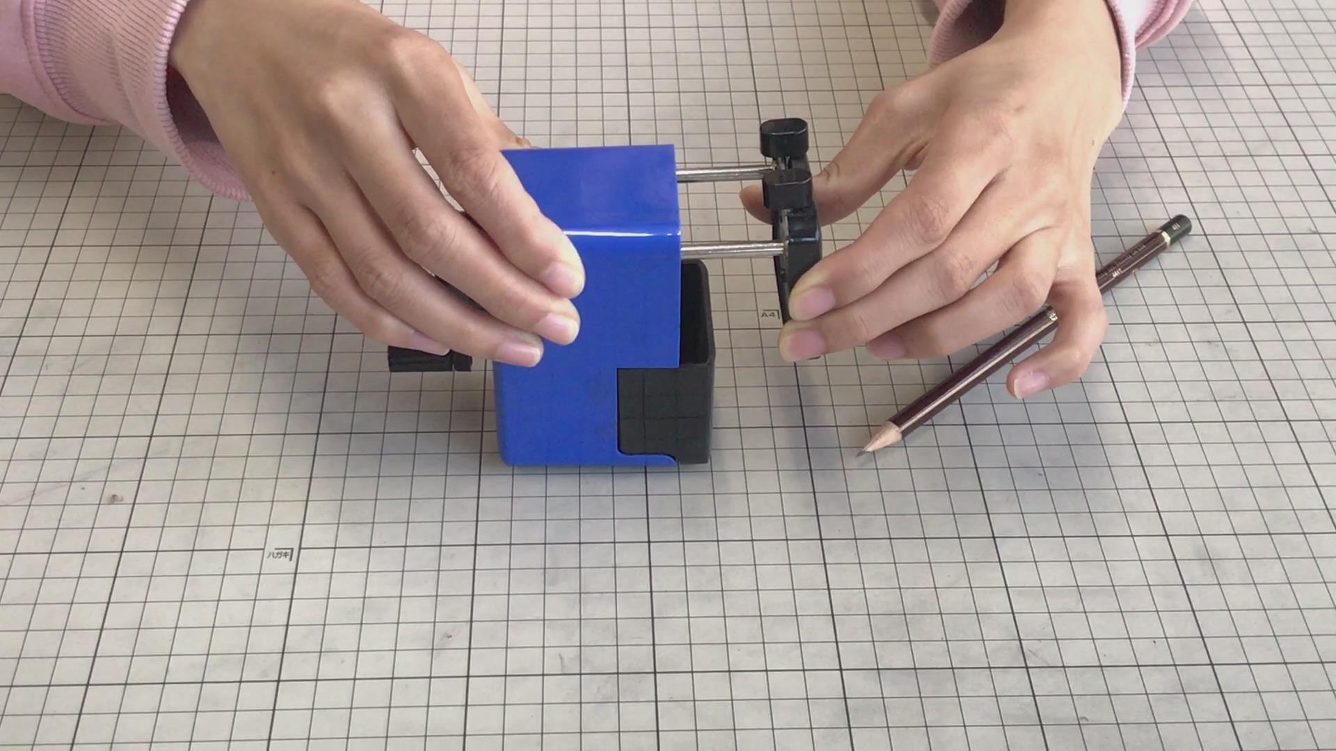 我现在给他安装起来,然后开始削铅笔,大部分的转笔刀都需要把这个地方拽出来,然后插铅笔,现在市面只有几种是不需要拽出来的,然后削的时候就是正常摇,