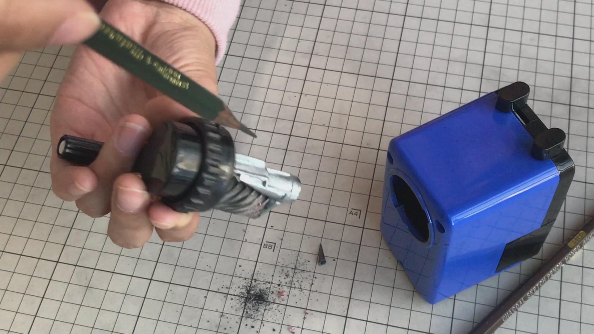 然后就是卡铅怎么解决,一般要是卡铅,都是大号铅笔,摇的时候太猛导致的,我们可以把刀头卸下来,找一支6H或者4H把卡铅顶出来就可以了,