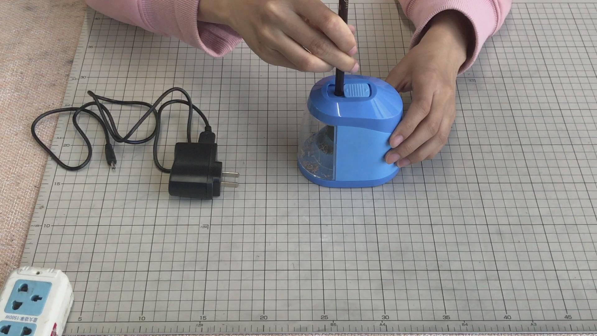 接下来我说一下电动转笔刀的使用方法,一般都是可插电和电池两用的,或者插电还能充电的,