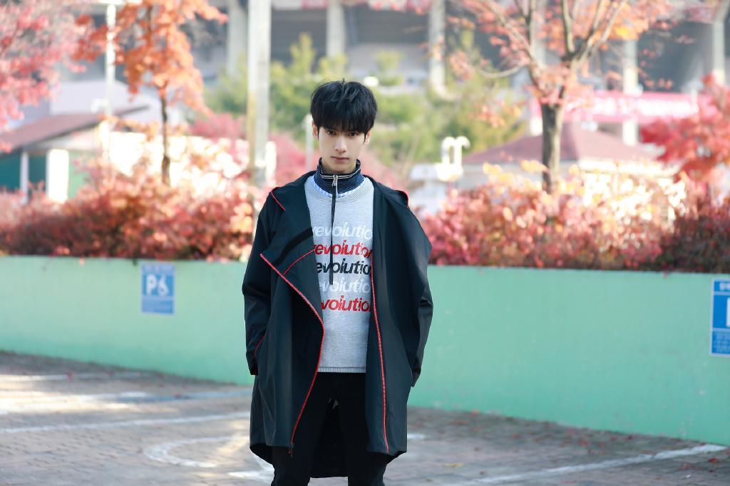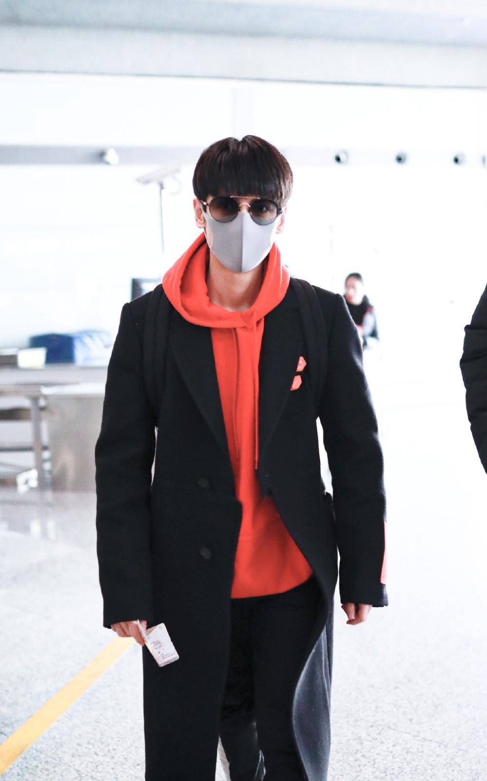 罗云熙身穿着一件黑色的毛昵大衣+黑色的牛仔裤,黑色的造型与“小鱼仙倌”的风格完全不同,脚踏一双百搭的小白鞋,巧妙地形成黑白配,简单中透着撞色吸睛的小心机。经典的黑白配太常见了,罗云熙为了使造型更吸睛,内搭件橙红色的连帽卫衣,使简单的造型变得更有活力与朝气,这搭配太赞了,有木有~~