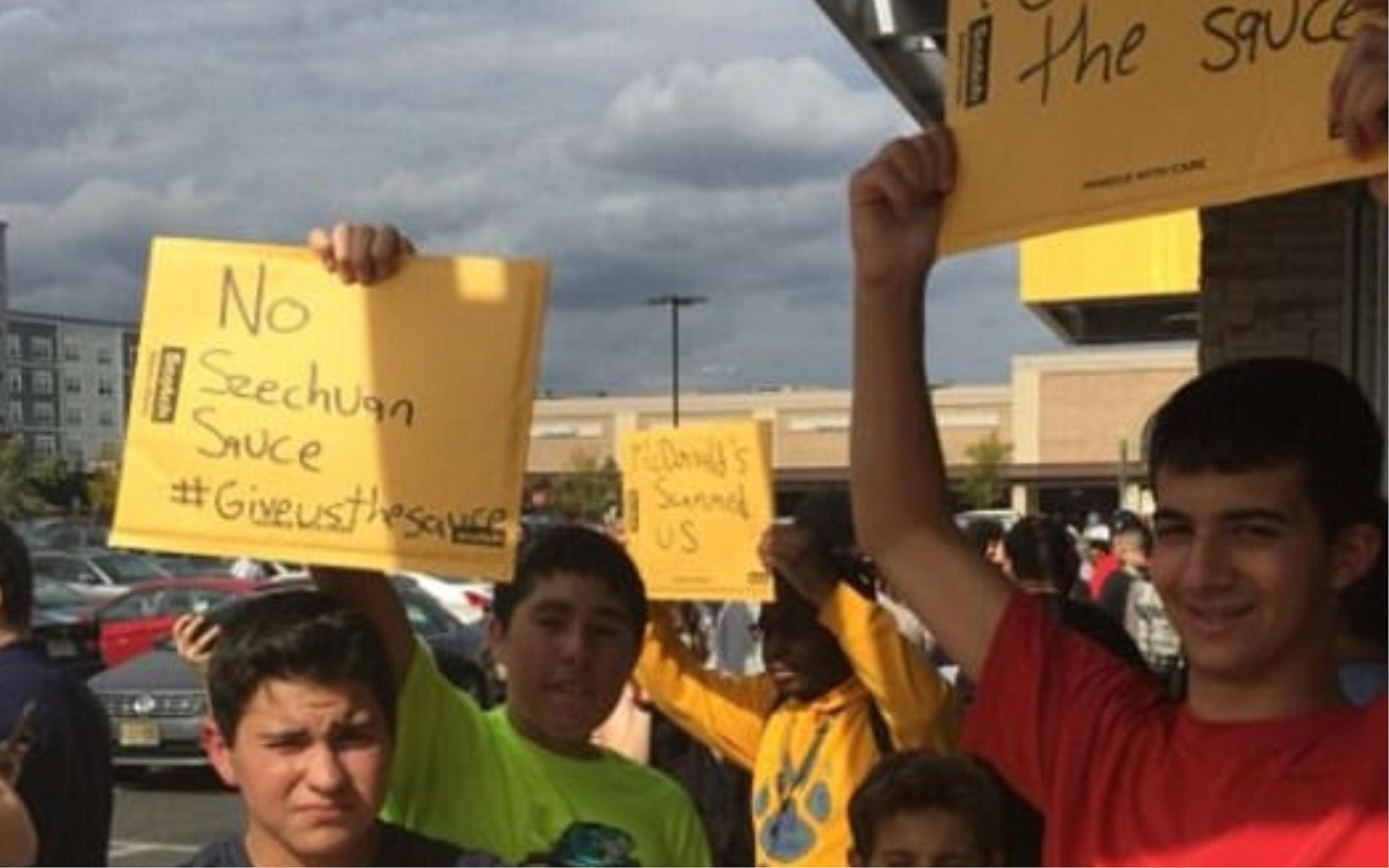 图:民众在麦当劳前喊口号“我要辣酱!”