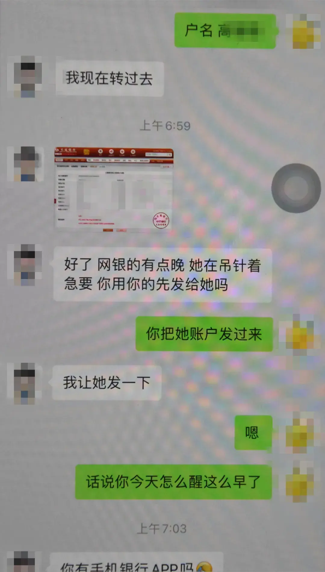 本以为可以继续睡个回笼觉,怎料钱先生又收到其女友微信发来的信息,称其朋友检查费用不够,还要转账700元,并再次发来了一张向其账户转账700元的图片。钱先生看到后,通过微信打去了语音电话,想询问一下情况,但对方未接通,钱先生想着可能其女友是在忙着给她朋友帮忙,就将700元转到了提供的账户里,之后钱先生也就没把遇到的事情当回事。