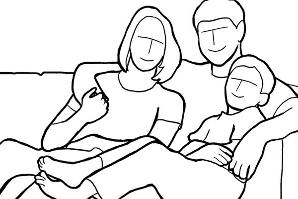 让家人坐在他们最喜欢的沙发上,紧紧地拥抱在一起。让每个人都保持足够的交错,以使所有面部特征都可见。