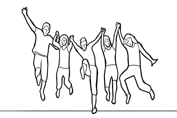 只需要求每个人手牵手并跳跃(最好是同时将手臂举过头顶),在短跑后进行跳跃。
