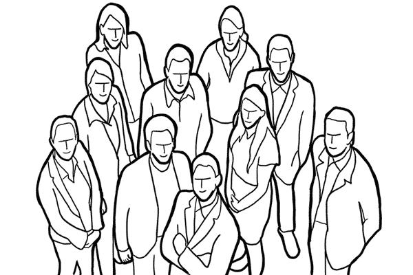 与一大群人一起工作时,你将无法控制每个人的姿势或表情。这里只要你注意整体的构图就行就可以。引导每个人站在一起,没有明显的差距。让他们面朝前,双臂交叉放在胸前。最重要的是,要确保所有人的面容都是可见的。