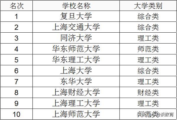 上海综合实力排名前十高校