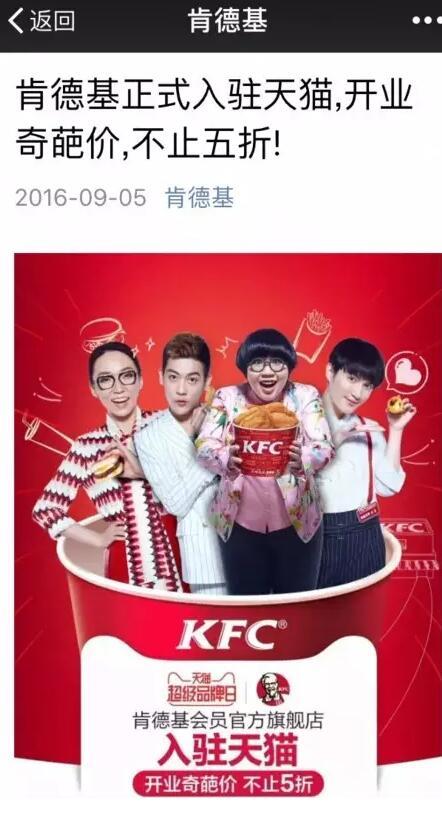 小新发现,有意思的是,肯德基方面似乎已经在“投桃报李”,宣布将于近期正式入驻天猫,未来消费者可以在天猫店里购买肯德基食品的电子券,然后到实体店里兑换相应食品。