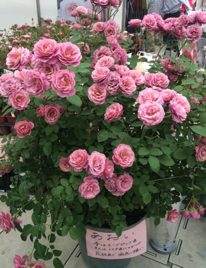 重瓣,深粉色,浓浓水果香,多季节重复开花。植株高约150cm。