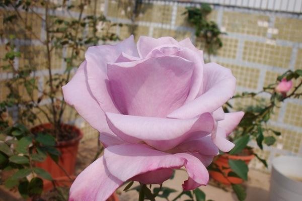 花径13-15cm,重瓣(花瓣25-30枚),淡蓝紫色,浓香,多季节重复开花。植株高约150cm。