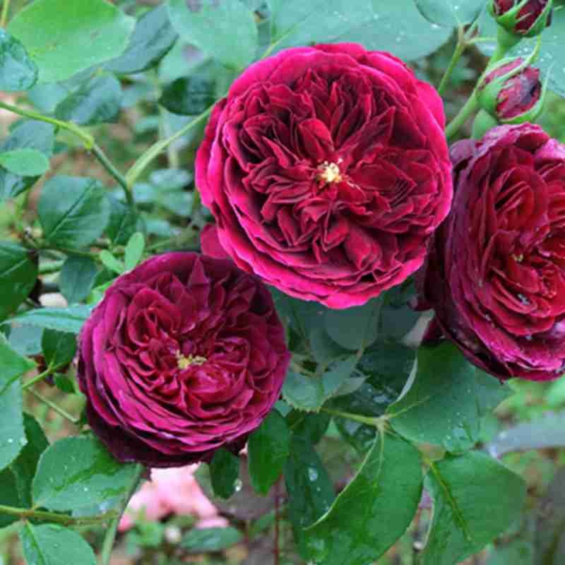 花径8cm,重瓣,暗红色,浓香,多季节重复开花。