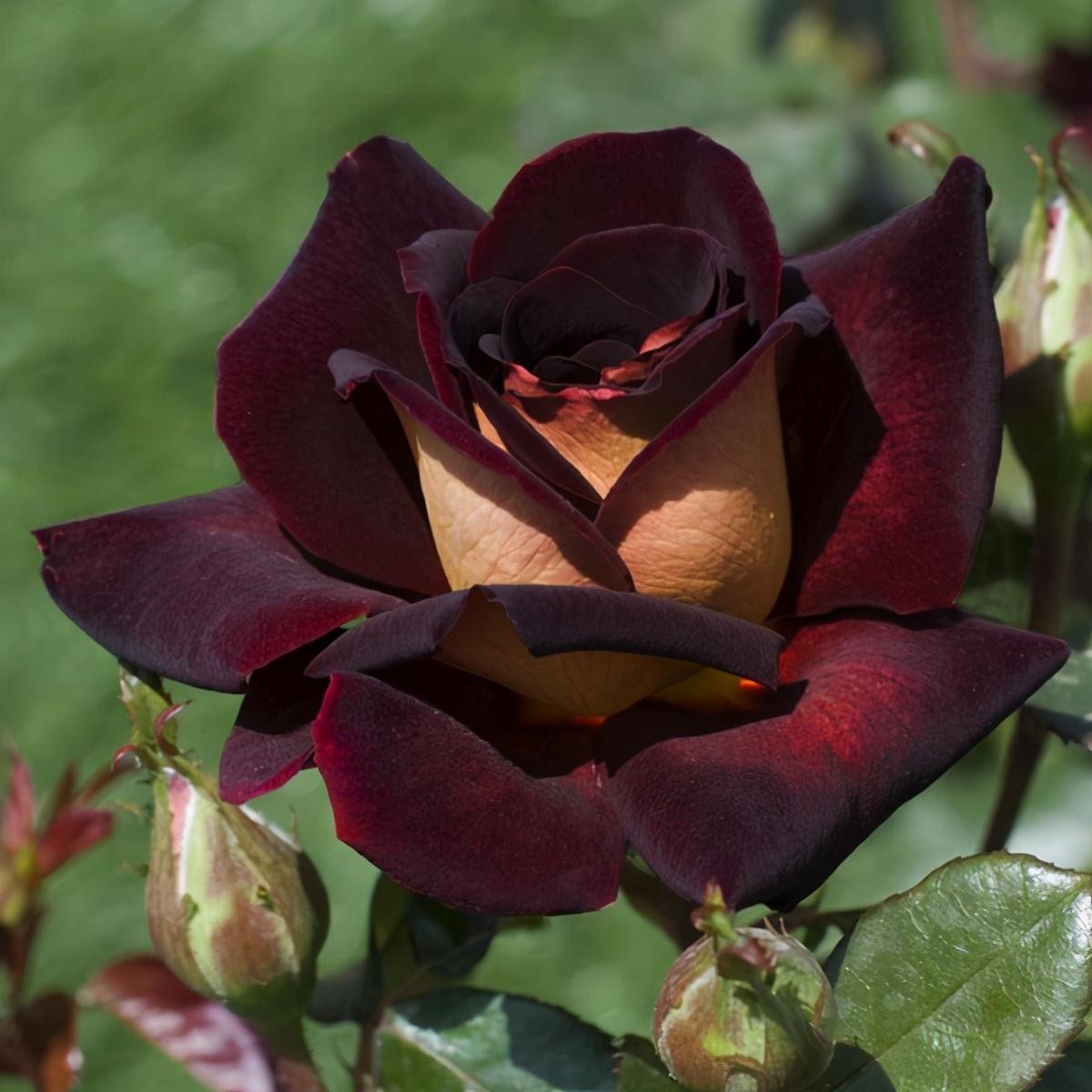特点:花大,花瓣有天鹅绒般的质感,花色丰富(正面是深紫红色,背面是淡黄色),整个花朵非常端庄大气。