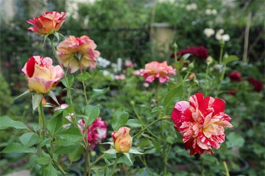 特点:勤花、多头开花,花色非常艳丽。植株高大,抗病性好,枝条比较软,刺比较多,直立性一般。