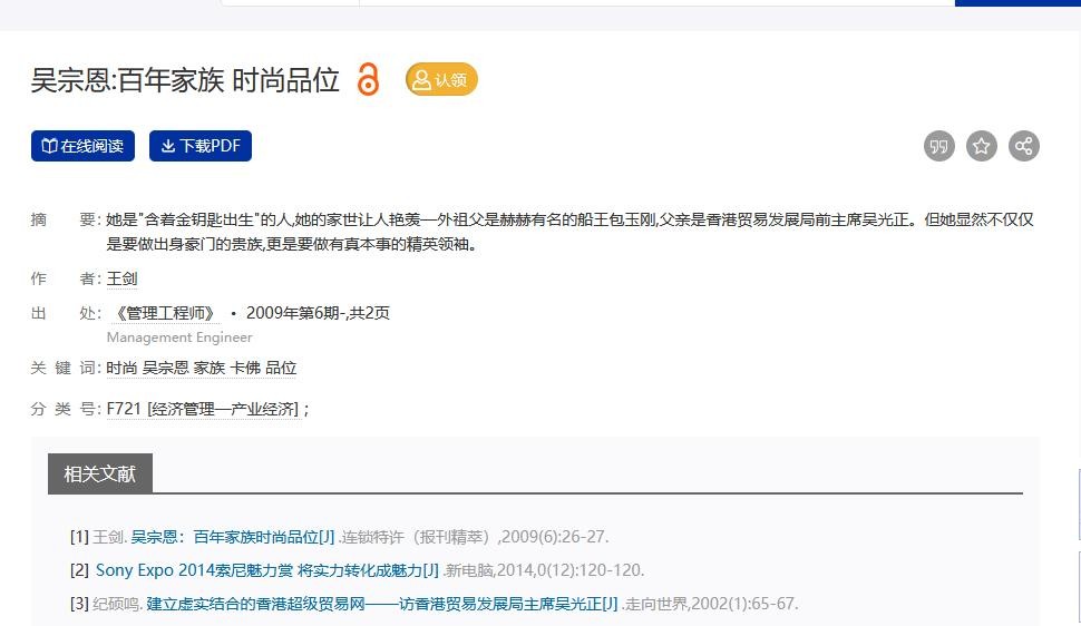 参考资料:[1]王剑.吴宗恩:百年家族 时尚品位[J].管理工程师,2009,14(6):